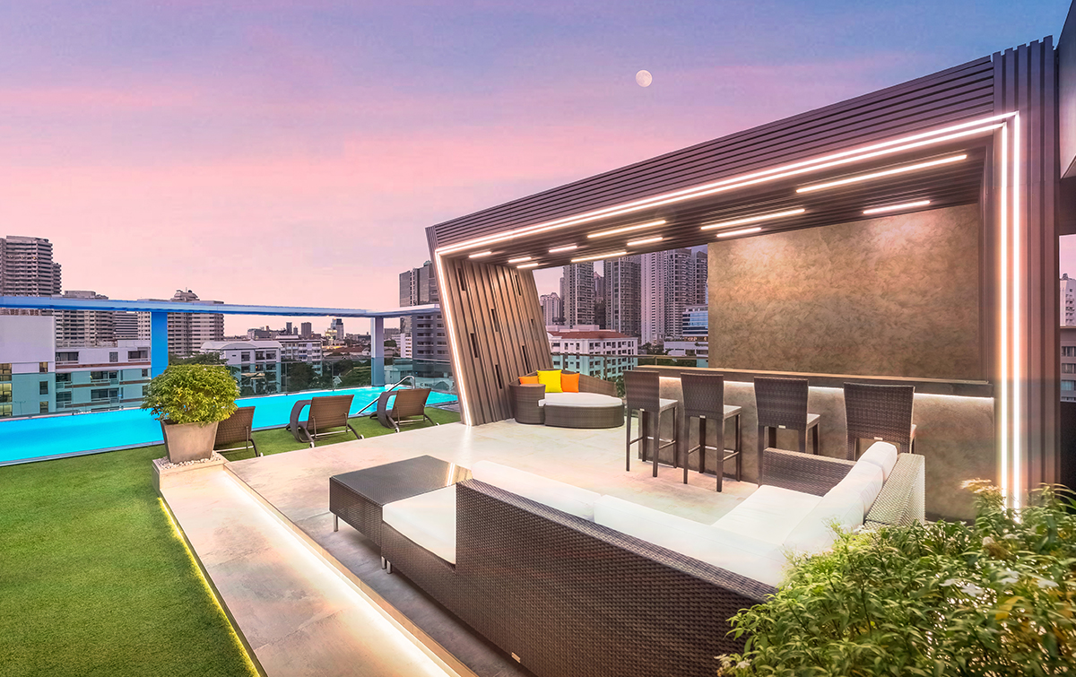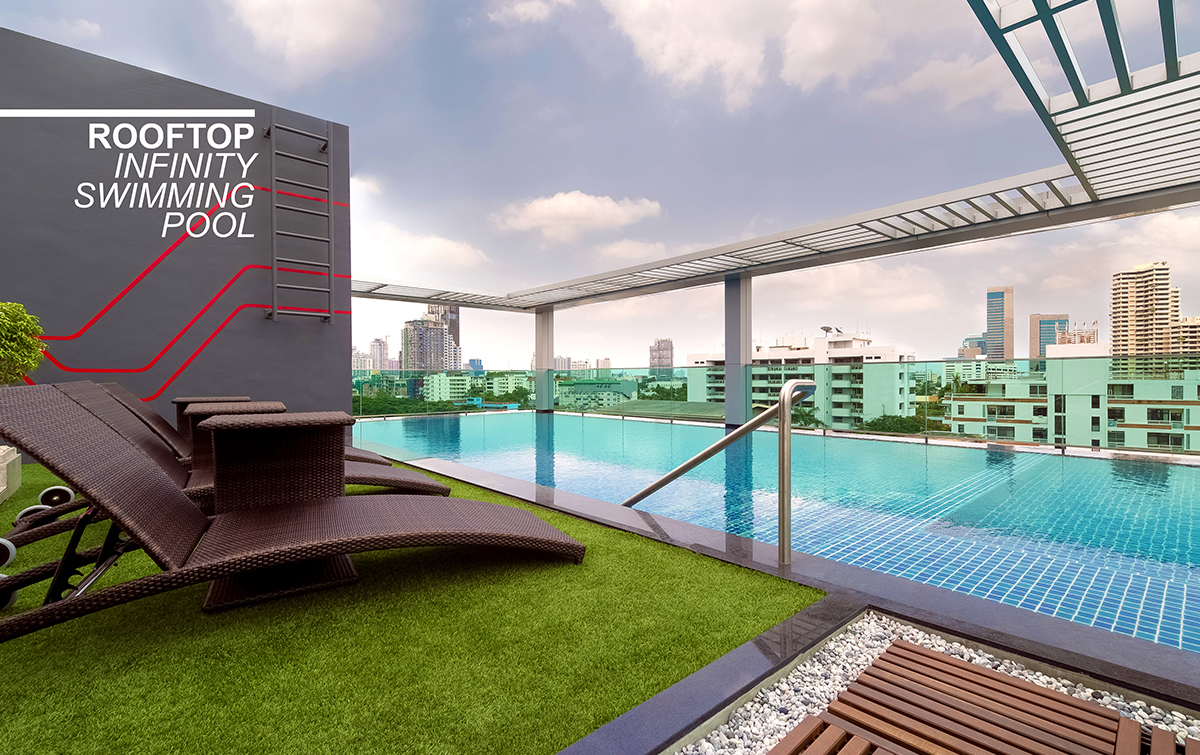 AASHIANA is a modern urban apartment located in the midst of Sukhumvit Soi 26, Bangkok – a prime location in the heart of the city. The apartment was developed by Urban Bliss Co., Ltd. in mid-2016. The residence features 9 floors including the rooftop and a total of 13 meticulously designed units (one, two, and three bedroom units) which are fully furnished and equipped with a home automation system, automated curtains, an Ultra HD smart TV, and more. Facilities include an infinity swimming pool, rooftop lounge, fitness gym, steam room, while services include transport service to the main roads, community malls, shopping centers, and scheduled room cleaning.